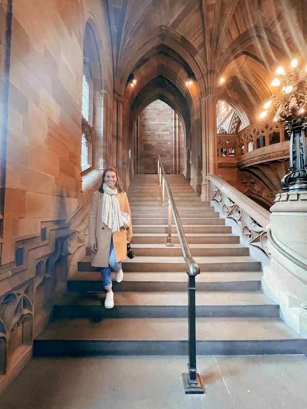 You can spend a few minutes walking around this square. It’s busy, so you can see the life in Manchester just by looking around. Around the square, you can see a lot of buildings and libraries. If you want to visit the Library of Manchester, it’s a beautiful place, and there is a cafe inside where you can grab some food and sit and enjoy the moment.