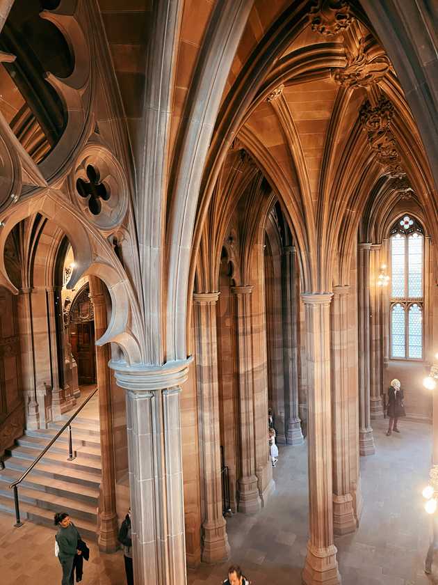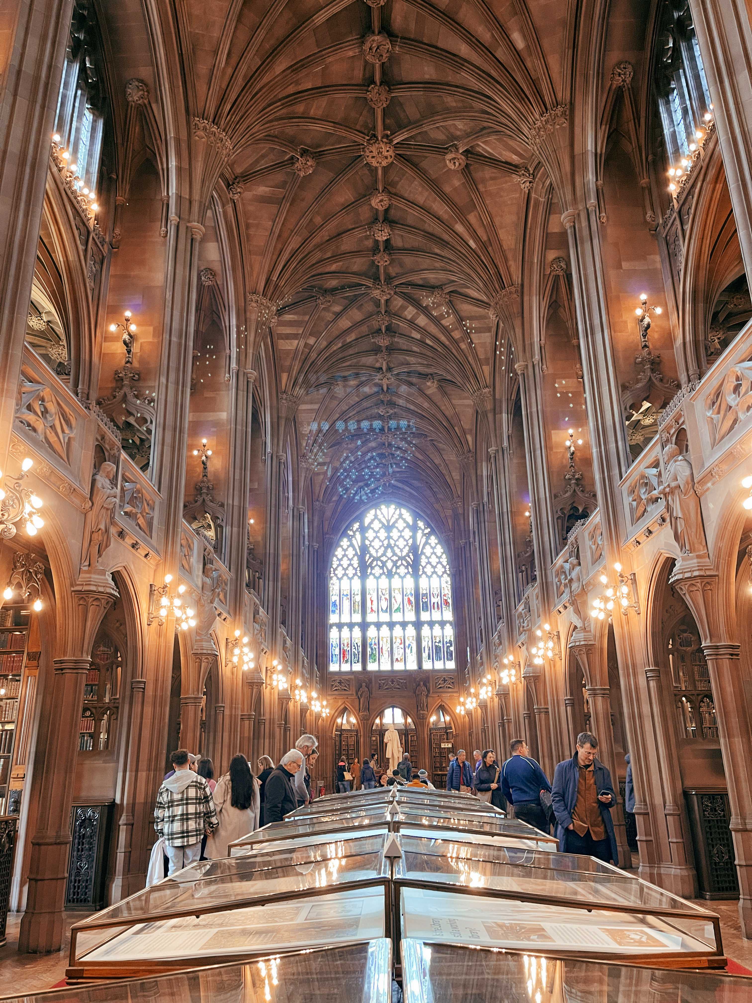 The John Rylands Research Institute and Library is a magnificent neo-Gothic building situated on Deansgate in Manchester, England. It forms part of the University of Manchester and holds a special place in the city’s cultural landscape.